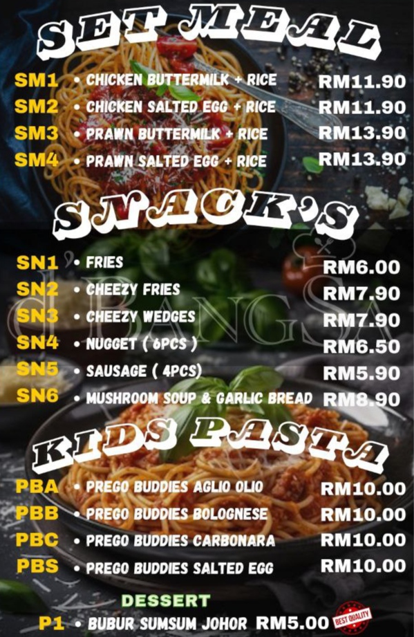 Welcome to d'BANGSA port kiosk, a hidden gem nestled in the heart of Jejawi, Kangar. This charming Western restaurant offers a delightful dining experience with menus that vary from the serene mornings to the vibrant afternoons. Guests can enjoy breathtaking views of lush paddy fields during breakfast and savor the soothing 'angin timur perlis' winds at night.